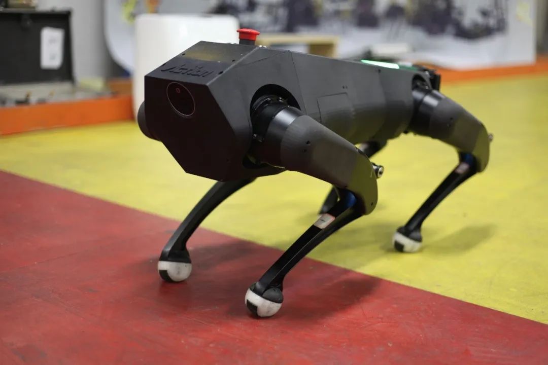 十二自由度串联关节,使得机器人灵活性更高。自主设计的空心轴双角位置检测大扭矩集成关节将线缆通过空心轴引入身体内部,避免了线材刮蹭,提高安全性。电动肌肉采用创新性的直线驱动方式,效率高,作用方式直接简单,避免了盘式电机增大腿部质量及转动惯量。同时足端检测形成控制闭环。动量轮模块与步态控制周期配合提高了机体的稳定性。